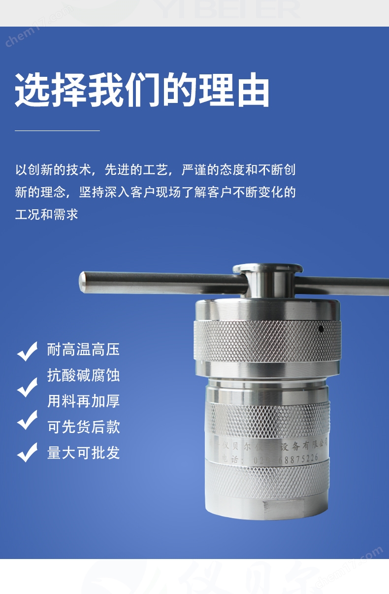 计,手动螺旋紧固(扳手机械紧固)密封性能好;杯顶有泄气孔,安全系数高即使在温度失