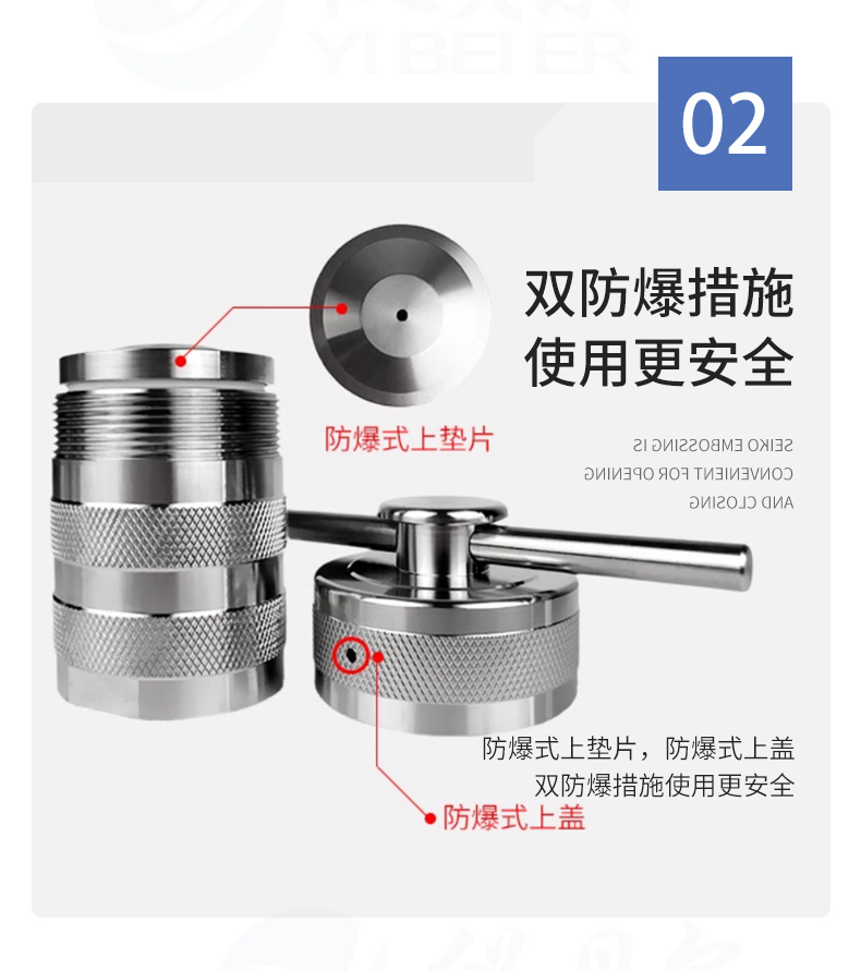 计,手动螺旋紧固(扳手机械紧固)密封性能好;杯顶有泄气孔,安全系数高即使在温度失